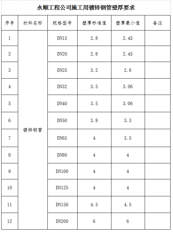 ②熱鍍鋅鋼管:標(biāo)準(zhǔn)為GB/T3091-2008 《低壓流體輸送用焊接鋼管》,管材不得彎曲、銹蝕,無飛刺、重皮及凹凸不平現(xiàn)象,外觀整齊、無銹斑、無變形;為熱浸鍍鋅,鍍鋅量不小于國家規(guī)范要求;鍍鋅鋼管壁厚不小于永順工程公司施工用鍍鋅鋼管最小壁厚,材料廠商品牌要求:徐州光環(huán)鋼管科技有限公司、天津友發(fā)鋼管集團(tuán)股份有限公司、天津市飛龍制管有限公司、邯鄲市正大制管有限公司、天津君誠管道實(shí)業(yè)集團(tuán)有限公司、河北天創(chuàng)管業(yè)有限公司、天津正金元鋼管有限公司;管體不應(yīng)標(biāo)注“消防專用”等與熱力工程無關(guān)的字樣。