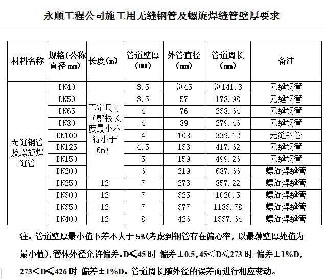①無縫鋼管:采取20#鋼,標(biāo)準(zhǔn)為GB/T17395-2008《無縫鋼管尺寸、外形、重量及運(yùn)行偏差》、GB/8163《輸送流體用無縫鋼管》;螺旋鋼管:材質(zhì)為Q235B,標(biāo)準(zhǔn)為GB/T 9711-2017。無縫鋼管及螺旋鋼管壁厚最小值下差不大于5%,(考慮到鋼管存在偏心率,以最薄壁厚處值為最小值)且不得低于以下企業(yè)標(biāo)準(zhǔn):上海寶鋼集團(tuán)公司、首鋼集團(tuán)、鞍山鋼鐵集團(tuán)公司、武漢鋼鐵(集團(tuán))公司、萊蕪鋼鐵集團(tuán)、濟(jì)南鋼鐵集團(tuán)總公司、攀枝花鋼鐵(集團(tuán))公司、唐山鋼鐵集團(tuán)有限責(zé)任公司、青島鋼鐵控股集團(tuán)有限責(zé)任公司、天津鋼管集團(tuán)有限公司。