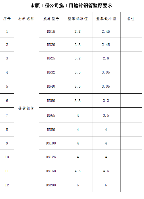 ②熱鍍鋅鋼管:標準為GB/T3091-2008 《低壓流體輸送用焊接鋼管》,管材不得彎曲、銹蝕,無飛刺、重皮及凹凸不平現(xiàn)象,外觀整齊、無銹斑、無變形;為熱浸鍍鋅,鍍鋅量不小于國家規(guī)范要求;鍍鋅鋼管壁厚不小于永順工程公司施工用鍍鋅鋼管最小壁厚,材料廠商品牌要求:徐州光環(huán)鋼管科技有限公司、天津友發(fā)鋼管集團股份有限公司、天津市飛龍制管有限公司、邯鄲市正大制管有限公司、天津君誠管道實業(yè)集團有限公司、河北天創(chuàng)管業(yè)有限公司、天津正金元鋼管有限公司;管體不應標注“消防專用”等與熱力工程無關的字樣。